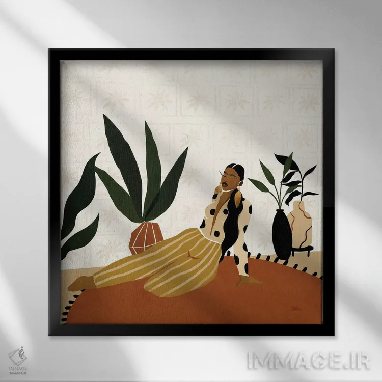 براساس پالت گرم اثر، قاب تیک گرم (چوبی) پیشنهاد اول است و مشکی مات (فریم متوسط) مکمل. برای سفارشهای پروژهای با ابعاد و قابهای اختصاصی با ایماژ در تماس باشید.