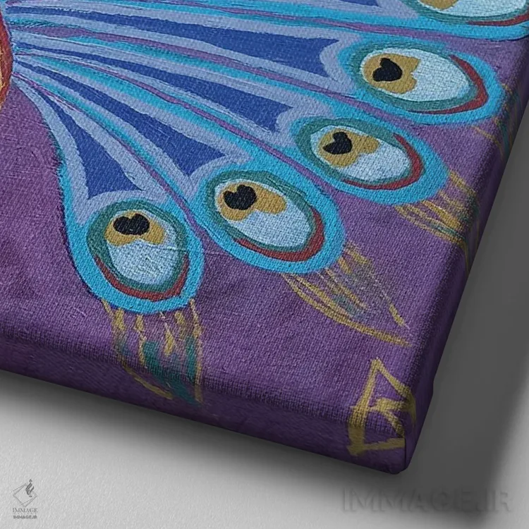 تابلو طاووس دوتایی ایرانی اثر بریت بردال نیلسن - نمای نزدیک بافت بوم
