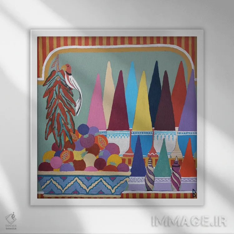 براساس پالت ترکیبی اثر، قاب تیک گرم (چوبی) پیشنهاد اول است و مشکی مات (فریم متوسط) مکمل. برای سفارشهای پروژهای با ابعاد و قابهای اختصاصی با ایماژ در تماس باشید.