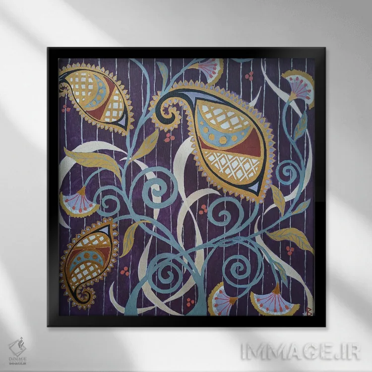 براساس پالت ترکیبی اثر، قاب تیک گرم (چوبی) پیشنهاد اول است و مشکی مات (فریم متوسط) مکمل. برای سفارشهای پروژهای با ابعاد و قابهای اختصاصی با ایماژ در تماس باشید.