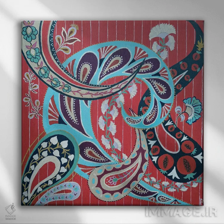تابلو نقش پیزلی قرمز (بتهجقه قرمز) اثر بریت بردال نیلسن