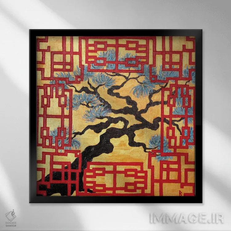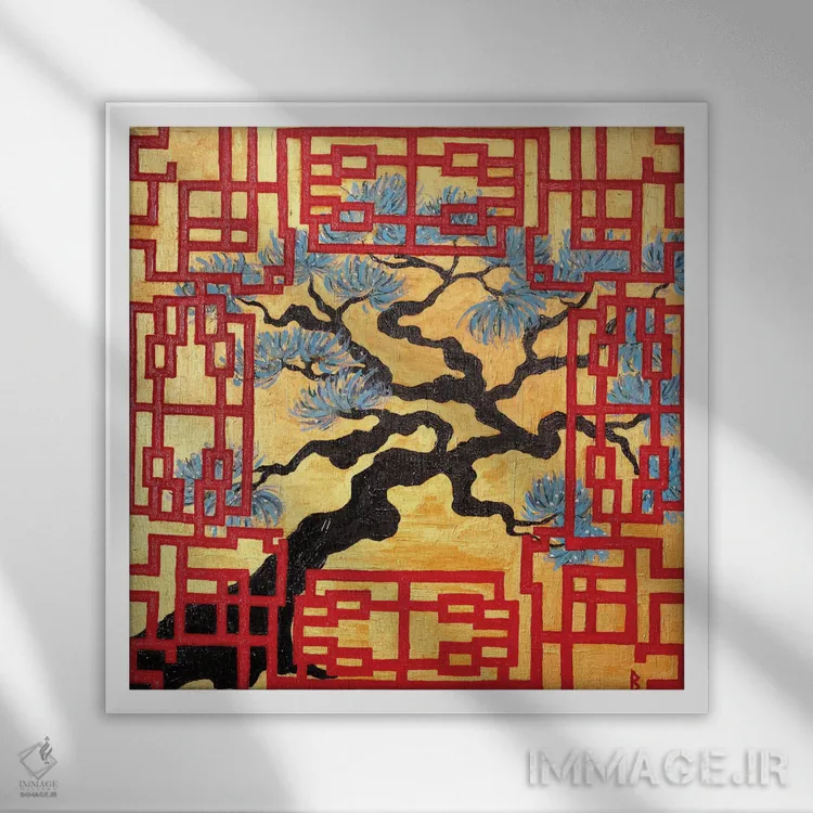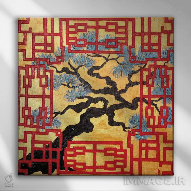 تابلو درخت پیچخورده و پرده مشبک قرمز اثر بریت بردال نیلسن
