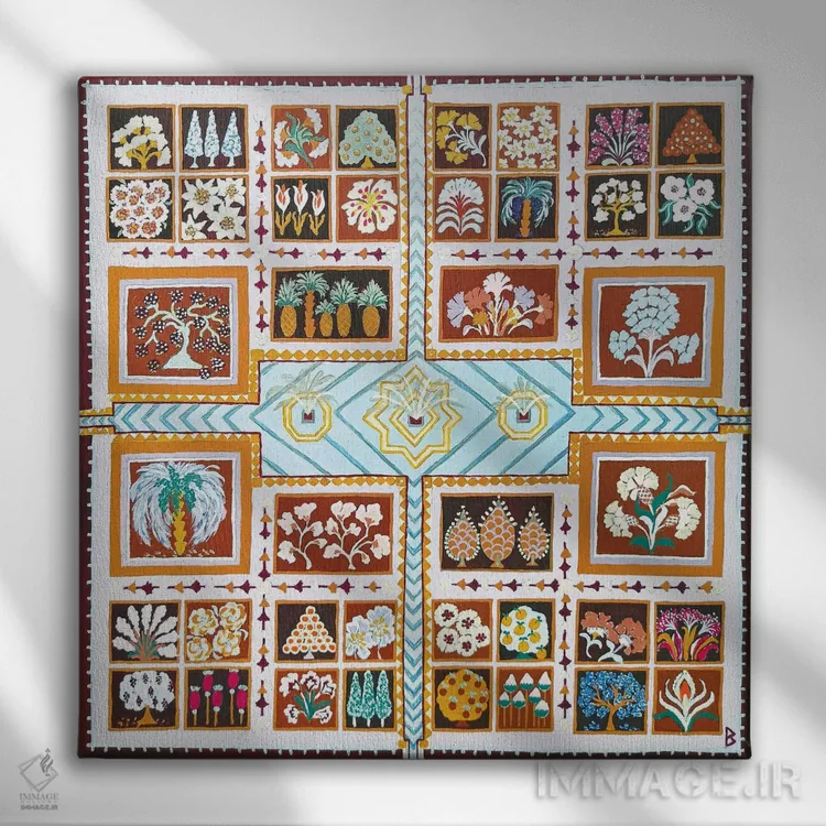 تابلو باغ ایرانی با سه فواره اثر بریت بردال نیلسن
