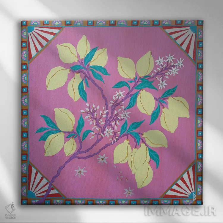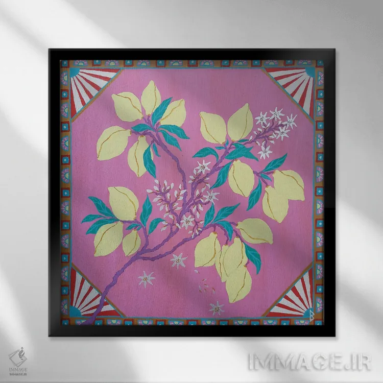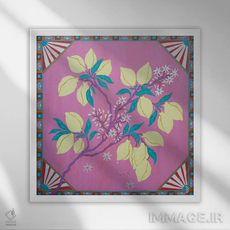براساس پالت ترکیبی اثر، قاب تیک گرم (چوبی) پیشنهاد اول است و مشکی مات (فریم متوسط) مکمل. برای سفارشهای پروژهای با ابعاد و قابهای اختصاصی با ایماژ در تماس باشید.