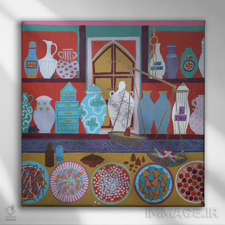 براساس پالت ترکیبی اثر، قاب تیک گرم (چوبی) پیشنهاد اول است و مشکی مات (فریم متوسط) مکمل. برای سفارشهای پروژهای با ابعاد و قابهای اختصاصی با ایماژ در تماس باشید.