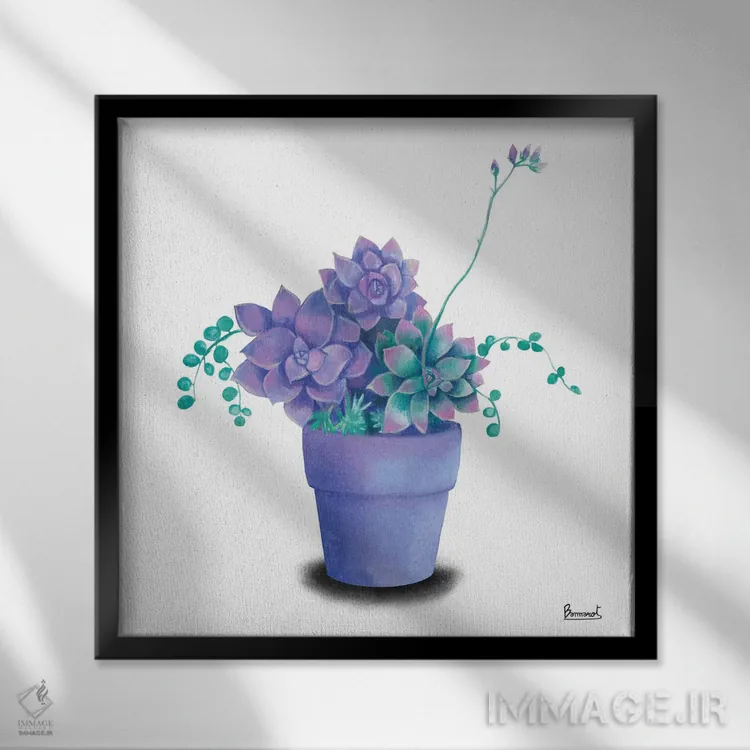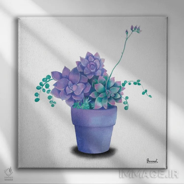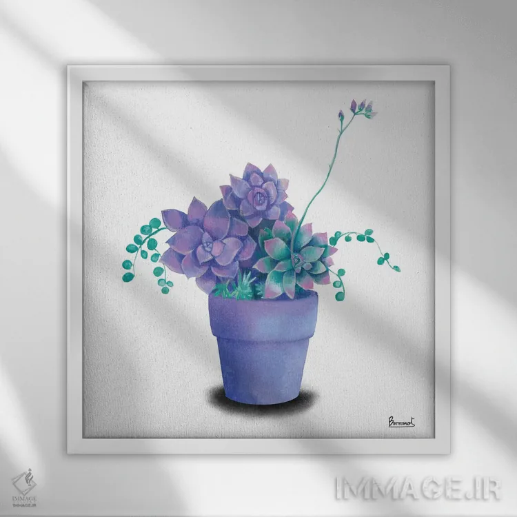 اگر دوست دارید دیوار روشنتر و آرامتر دیده شود، «گیاهان گوشتی فیروزهای ۲» اثرِ «باناروت» حس طراوت را بدون شلوغی وارد اتاق میکند، برای فضاهای بوهمی گزینهٔ مناسبیست. اگر دنبال «زیباییِ بیصدا» هستید، این اثر همان حس را دارد.