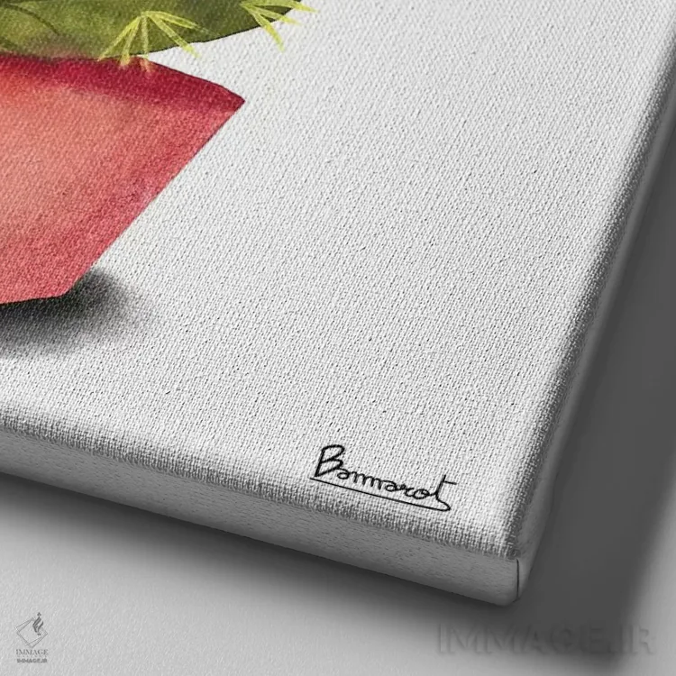 این اثر با عنوان «گلهای کاکتوس ۴» اثرِ «باناروت» تعادل رنگیِ لطیفی به چیدمان میدهد؛ برای دکورهای اسکانباوراوی انتخابی خوشسلیقه است. فضا را شلوغ نمیکند؛ فقط لطیفترش میکند.