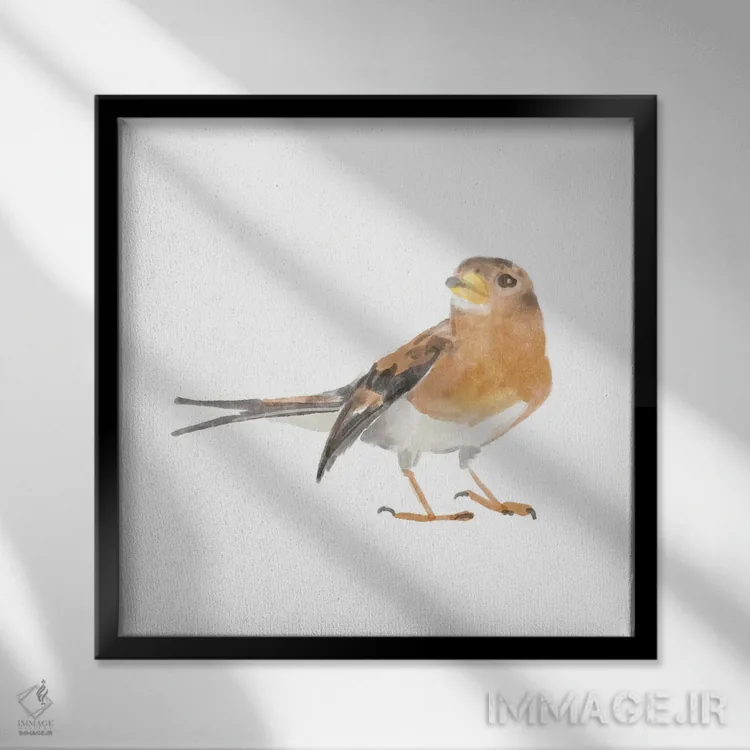 تابلو پرنده آوازخوان ۵ اثر باناروت - نمای قاب‌دار سفید