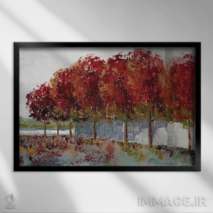 براساس پالت گرم اثر، قاب تیک گرم (چوبی) پیشنهاد اول است و مشکی مات (فریم متوسط) مکمل. برای سفارشهای پروژهای با ابعاد و قابهای اختصاصی با ایماژ در تماس باشید.