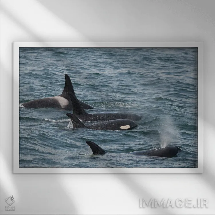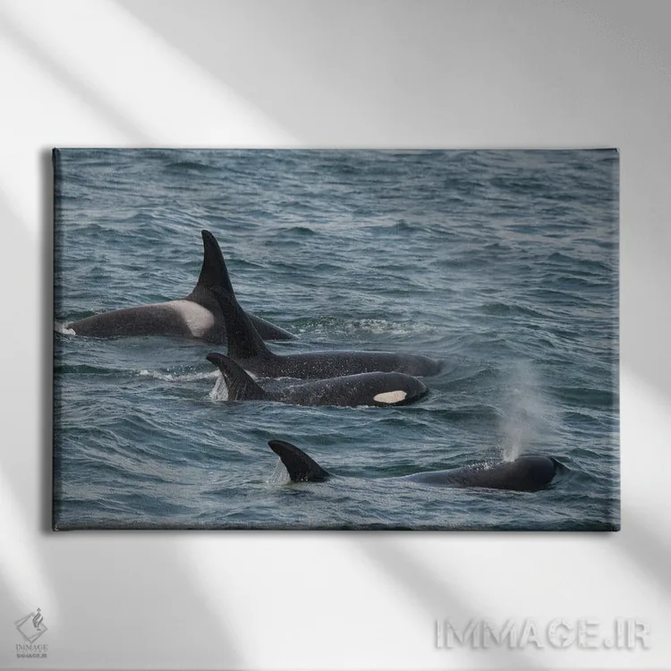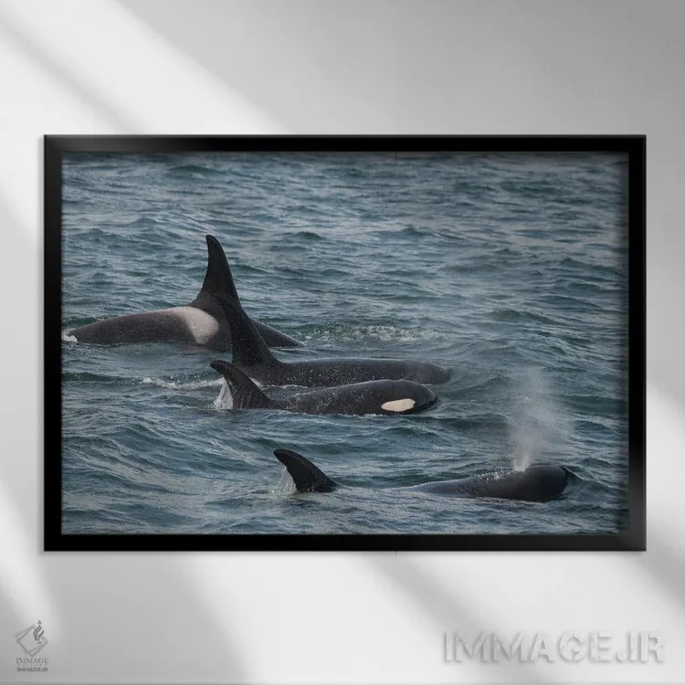 تابلو خانوادهای از نهنگهای قاتل در آبهای سرد ایسی استریت آلاسکا شنا میکنند اثر بتی سدرکوئیست