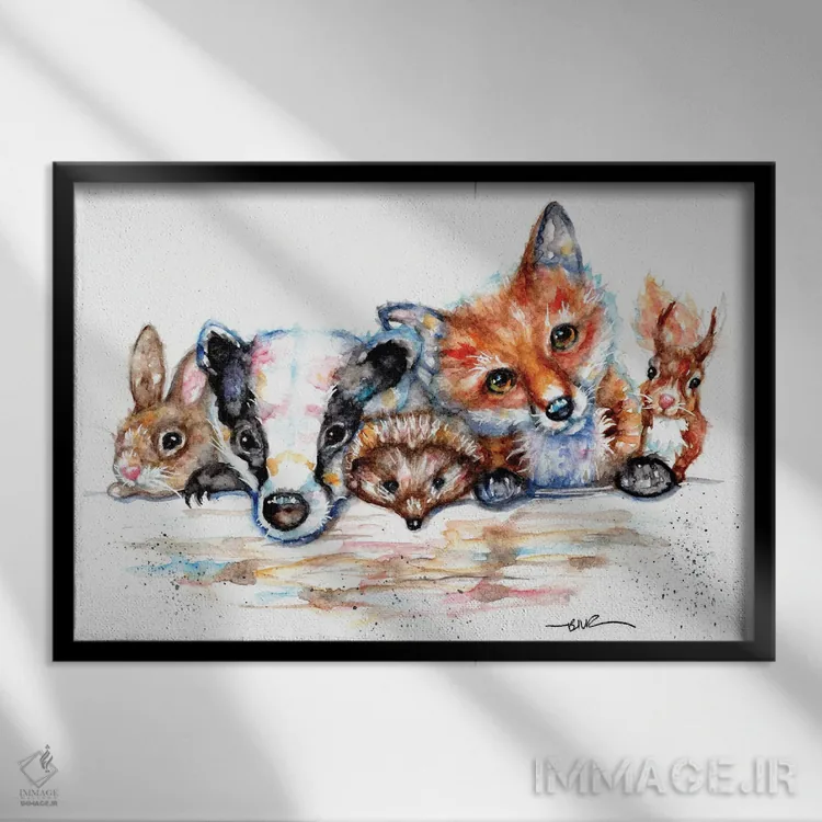 اگر به آثار حیوانات علاقه دارید، «دوستان روستایی» اثرِ «بیبزآرتس» گرما و شخصیت به فضا اضافه میکند، برای خانههایی با چوب و پارچههای گرم گزینهٔ مناسبیست. با قاب چوبی یا مشکی، حس مرتبتری پیدا میکند.