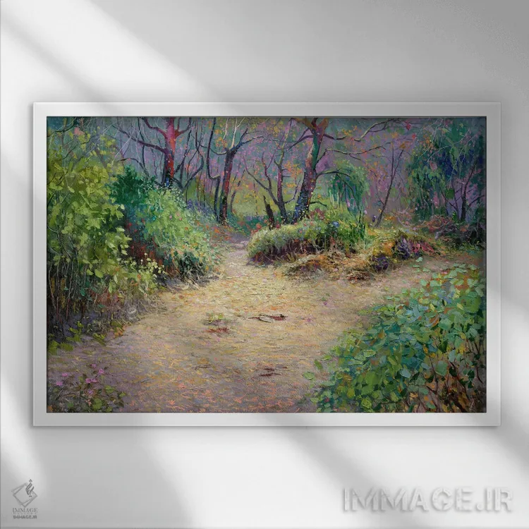 براساس پالت ترکیبی اثر، قاب بلوط روشن (چوبی) پیشنهاد اول است و استخوانی ملایم مکمل. برای سفارشهای پروژهای با ابعاد و قابهای اختصاصی با ایماژ در تماس باشید.