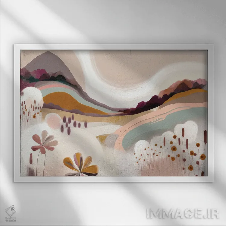 براساس پالت گرم اثر، قاب بلوط روشن (چوبی) پیشنهاد اول است و استخوانی ملایم مکمل. برای سفارشهای پروژهای با ابعاد و قابهای اختصاصی با ایماژ در تماس باشید.
