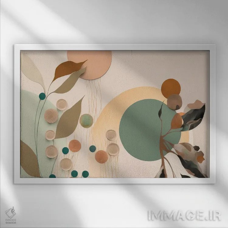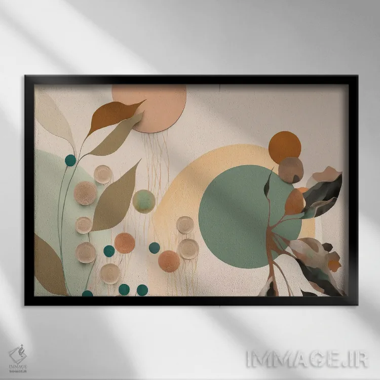 براساس پالت ترکیبی اثر، قاب بلوط روشن (چوبی) پیشنهاد اول است و استخوانی ملایم مکمل. برای سفارشهای پروژهای با ابعاد و قابهای اختصاصی با ایماژ در تماس باشید.