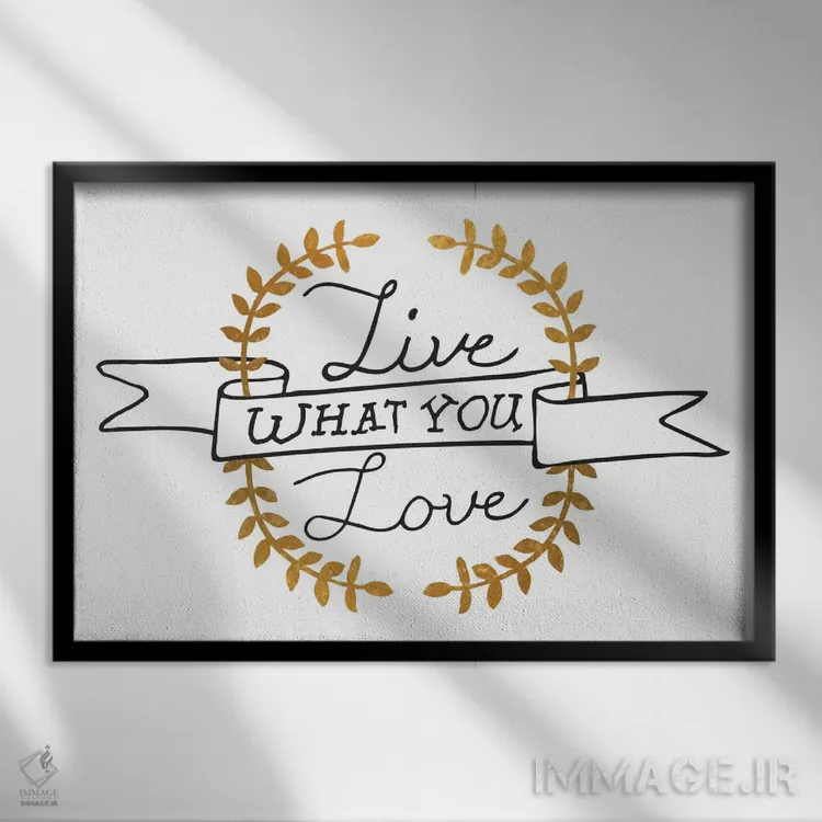 «آنچه را دوست داری زندگی کن III» اثرِ «فایو بای فایو کالکتیو» یک قاب تایپوگرافیک است که ریتم فضا را منظم نگه میدارد؛ برای دیوارهای سفید و چیدمانهای ساده، گزینهی خوبی است.
