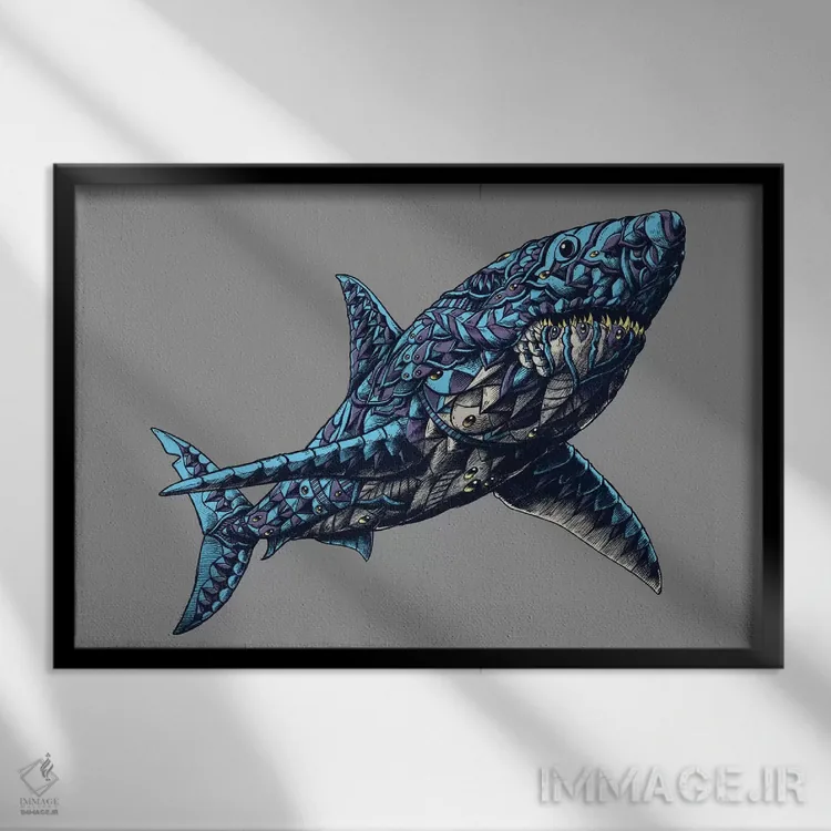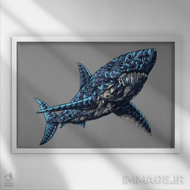 تابلو کوسه سفید بزرگ رنگی شماره ۱ اثر بیوورکز