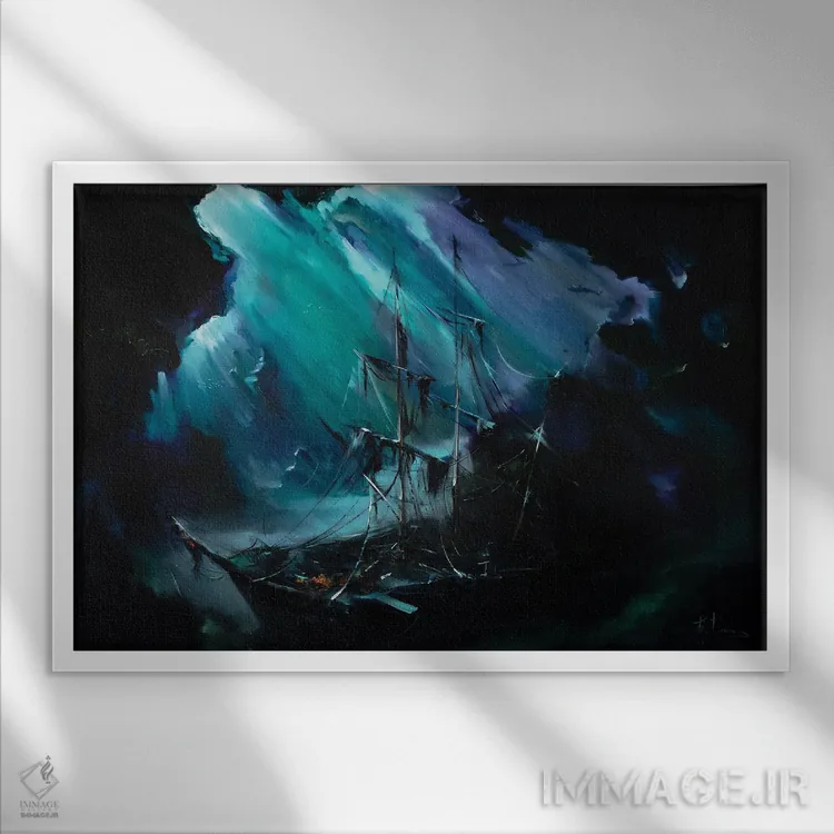 براساس پالت سرد اثر، قاب سفید مات (فریم باریک) پیشنهاد اول است و نقرهای برسخورده (متالیک) مکمل. برای سفارشهای پروژهای با ابعاد و قابهای اختصاصی با ایماژ در تماس باشید.