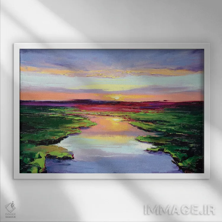 براساس پالت ترکیبی اثر، قاب تیک گرم (چوبی) پیشنهاد اول است و مشکی مات (فریم متوسط) مکمل. برای سفارشهای پروژهای با ابعاد و قابهای اختصاصی با ایماژ در تماس باشید.
