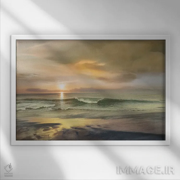 براساس پالت گرم اثر، قاب بلوط روشن (چوبی) پیشنهاد اول است و استخوانی ملایم مکمل. برای سفارشهای پروژهای با ابعاد و قابهای اختصاصی با ایماژ در تماس باشید.