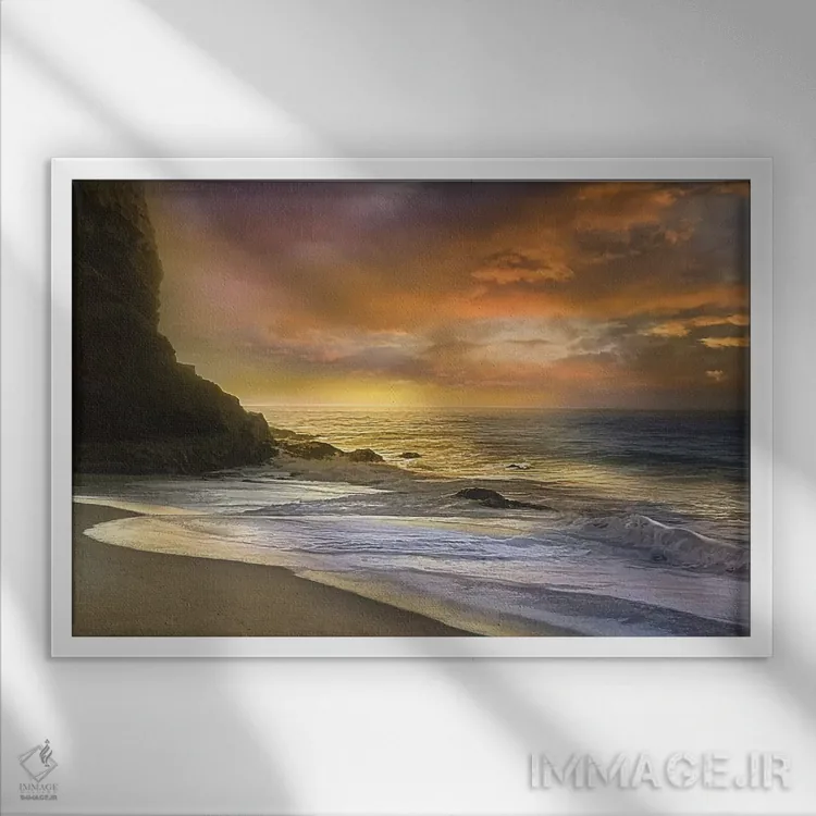 براساس پالت گرم اثر، قاب بلوط روشن (چوبی) پیشنهاد اول است و استخوانی ملایم مکمل. برای سفارشهای پروژهای با ابعاد و قابهای اختصاصی با ایماژ در تماس باشید.