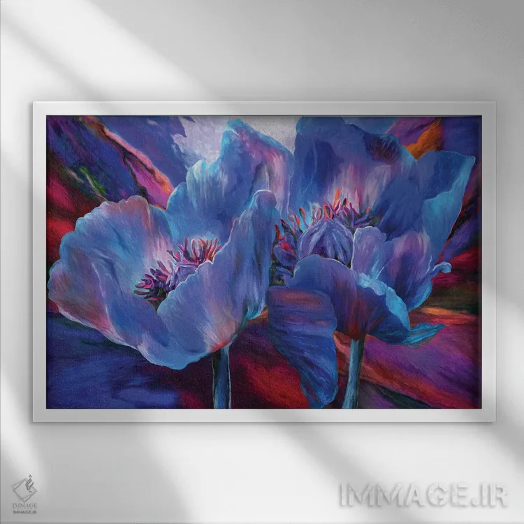 «خشخاشهای آبی بر زمینهٔ قرمز» اثرِ «کارول کاوالاریس» مثل یک نفس تازه است؛ حس فصل را آرام وارد فضا میکند؛ برای کنار میز آرایش یا کنسول انتخابی خوشسلیقه است. در کنار گیاهان آپارتمانی، هماهنگتر هم میشود.