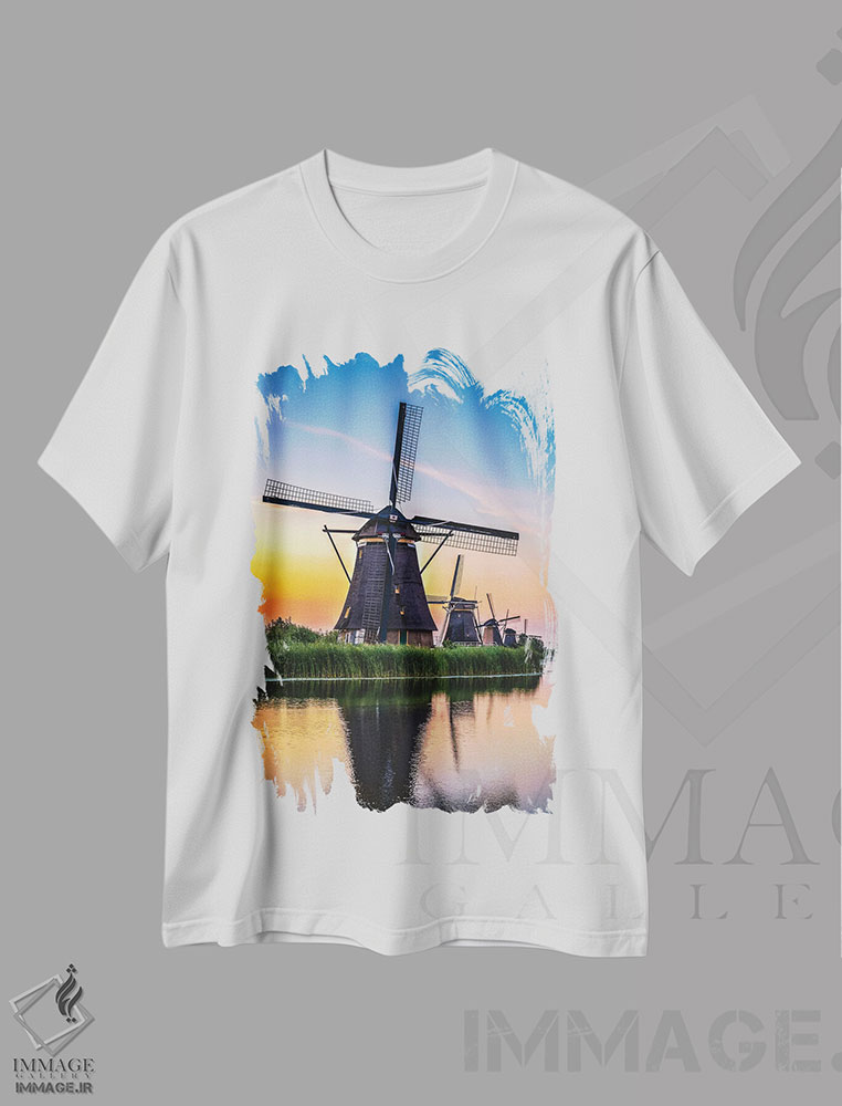 طرح «غروب آسیاب بادی کانال هلند» روی تیشرت؛ معرفی جزئیات و ست های پیشنهادی