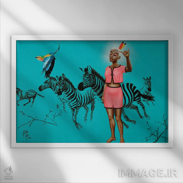 براساس پالت ترکیبی اثر، قاب تیک گرم (چوبی) پیشنهاد اول است و مشکی مات (فریم متوسط) مکمل. برای سفارشهای پروژهای با ابعاد و قابهای اختصاصی با ایماژ در تماس باشید.