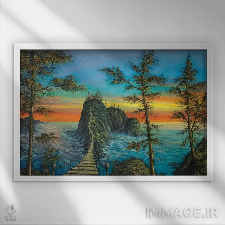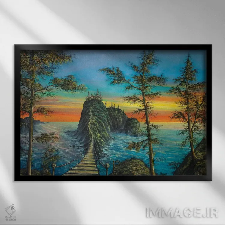 «جزیرهٔ اسرارآمیز» اثرِ «کالر بای فلیکز (نام هنرمند)» میتواند به دیوار، روشناییِ ملایم و دلنشین بدهد؛ برای کنار میز آرایش یا کنسول پیشنهاد میشود. با قاب روشن یا چوبی، حس طبیعیتری پیدا میکند.
