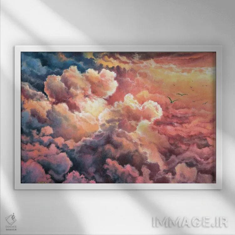 براساس پالت ترکیبی اثر، قاب تیک گرم (چوبی) پیشنهاد اول است و مشکی مات (فریم متوسط) مکمل. برای سفارشهای پروژهای با ابعاد و قابهای اختصاصی با ایماژ در تماس باشید.