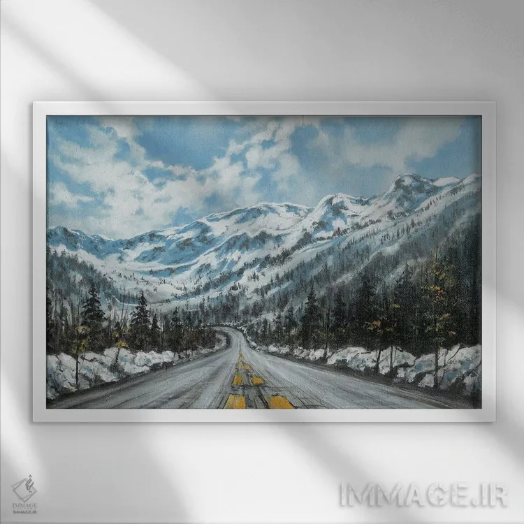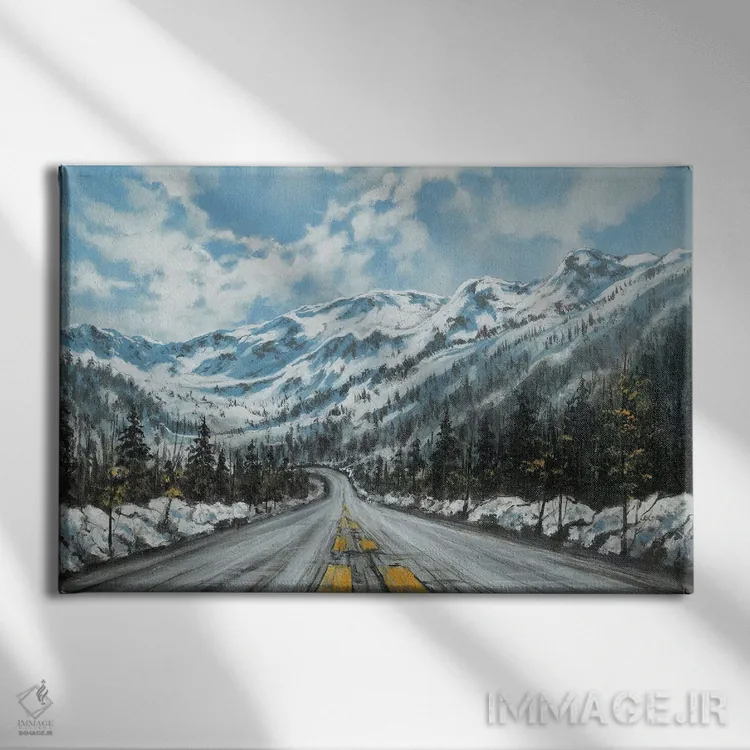در «رانندگی در کوهستان»، اثرِ «کالر بای فلیکز (نام هنرمند)» این اثر را با حس لژ و کلبه ارائه کرده؛ انتخابی خوب برای کنار آجر، چوب و نور زرد.