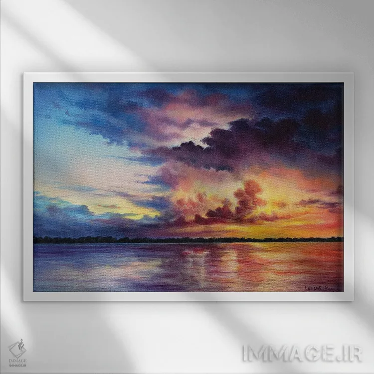 براساس پالت ترکیبی اثر، قاب تیک گرم (چوبی) پیشنهاد اول است و مشکی مات (فریم متوسط) مکمل. برای سفارشهای پروژهای با ابعاد و قابهای اختصاصی با ایماژ در تماس باشید.