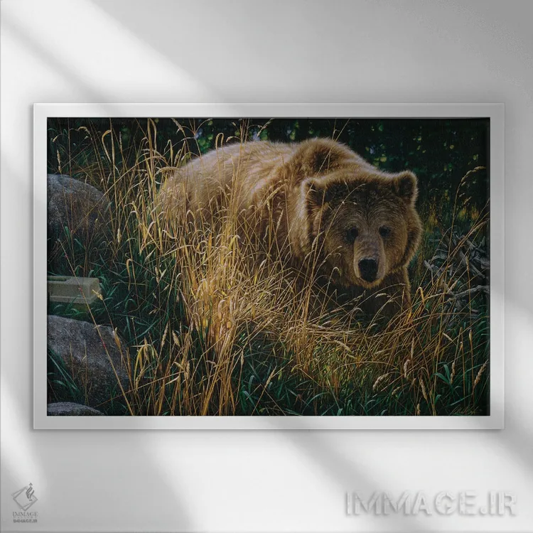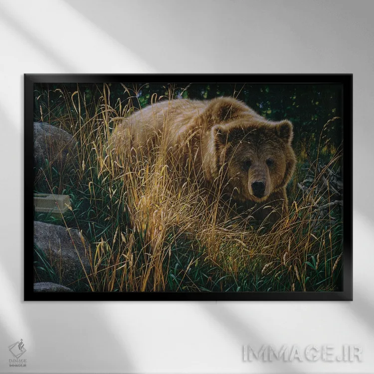 تابلو خرس قهوه‌ای در حال عبور از مسیر اثر کالین بوگل - نمای روبه‌رو روی دیوار