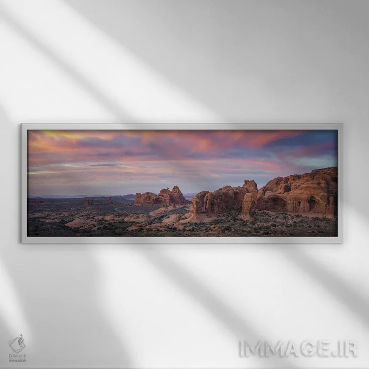 تابلو غروب خورشید بر فراز پارک ملی آرچز اثر عکاسی جاناتان راس - نمای روبه‌رو روی دیوار