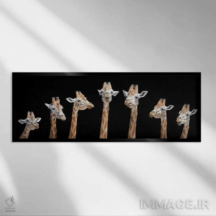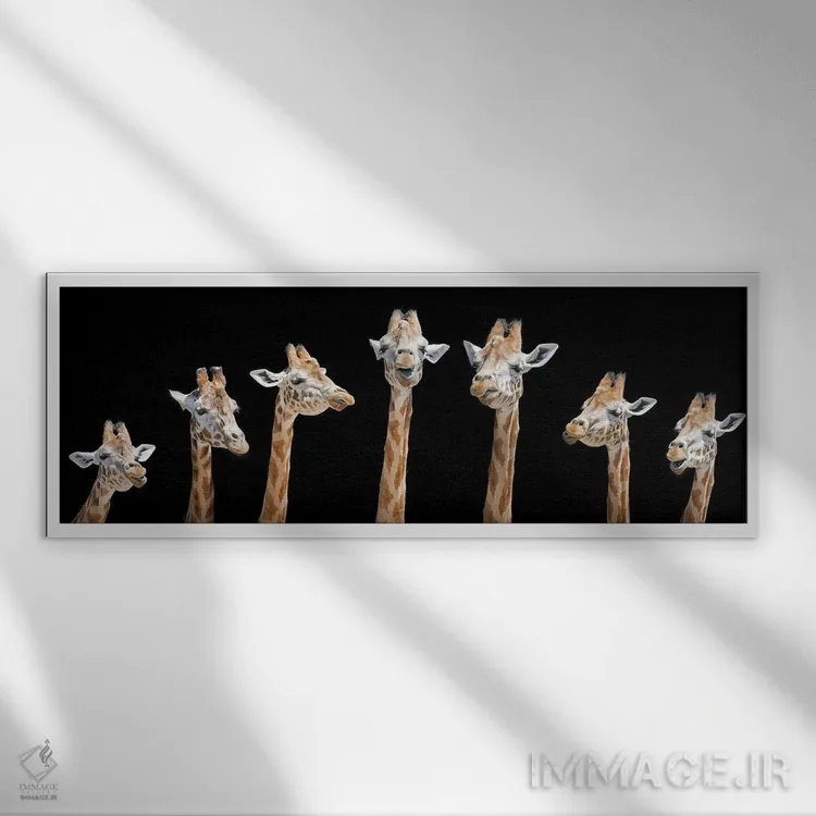 اگر میخواهید دیوار کمی سرزندگیِ محترمانه داشته باشد، «هفت زرافه» اثرِ «جین ریکس» برای دکورهای مینیمال، یک نقطهٔ توجه میسازد، برای اتاق کودک (بدون لحن کودکانه) گزینهٔ مناسبیست. با قاب چوبی یا مشکی، حس مرتبتری پیدا میکند.