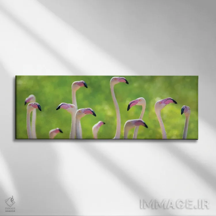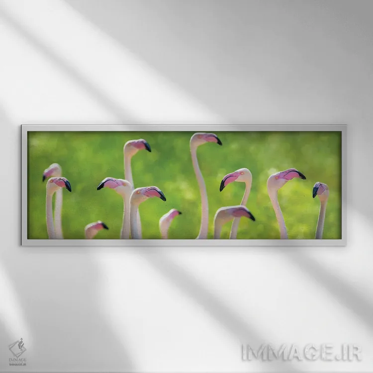 تابلو بنر فلامینگوهای بزرگ صورتی اثر جین ریکس