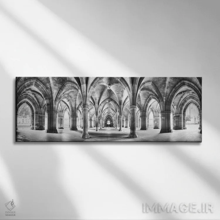 در «Glasgow، نمای وسیع کلاسترها، گلاسگو»، اثرِ «جین ریکس» این اثر را با زبان سیاهوسفید ارائه میکند؛ برای دکورهای کلاسیک—مدرن یک انتخاب مطمئن و هماهنگپذیر است.