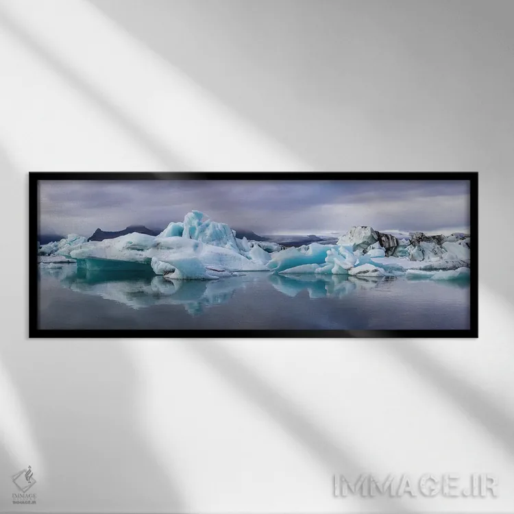 تابلو Iceland,پانورامای بازتاب یخچال جوکولسارلون، ایسلند اثر جین ریکس - نمای روبه‌رو روی دیوار