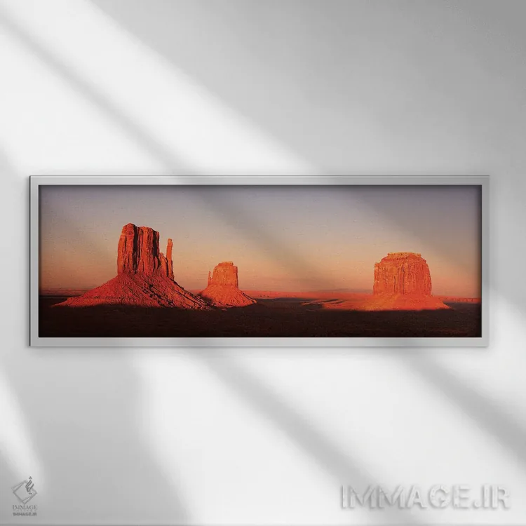 اگر میخواهید دیوار از «پسزمینه» بیرون بیاید، «پانورامای دره یادبود در غروب (Monument Valley)» اثرِ «جین ریکس» یک مرکز توجهِ باوقار میسازد؛ برای دکورهای کلاسیک با چوب و پارچه پیشنهاد میشود. برای ترکیب با چوب، سنگ یا فلز، انتخابی دقیق است.