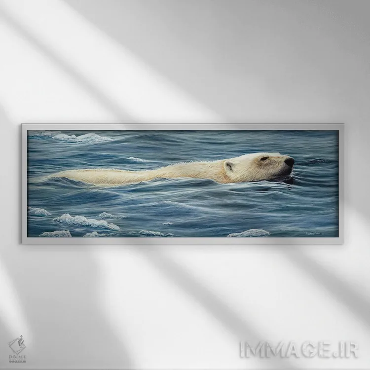 براساس پالت سرد اثر، قاب سفید مات (فریم باریک) پیشنهاد اول است و نقرهای برسخورده (متالیک) مکمل. برای سفارشهای پروژهای با ابعاد و قابهای اختصاصی با ایماژ در تماس باشید.