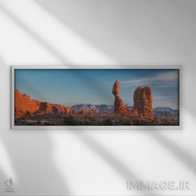 گاهی یک اثر کافیست تا فضا جمعوجور شود؛ «Utah. Balanced rock at sunset، Arches National Park.، ایالات متحده، یوتا. سنگ متعادل در غروب آفتاب، پارک ملی آرچز» اثرِ «جودیت زیمرمن» سلیقهٔ صاحبخانه را بیاغراق نشان میدهد؛ برای دکورهای کلاسیک با چوب و پارچه پیشنهاد میشود. اگر دنبال زیباییِ بیادعا هستید، این اثر درست مینشیند.