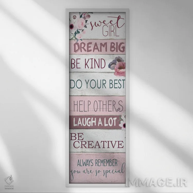 «دختر شیرین I» اثرِ «کیمبرلی آلن» یک قاب تایپوگرافیک است که ریتم فضا را منظم نگه میدارد؛ برای دیوارهای سفید و چیدمانهای ساده، گزینهی خوبی است.