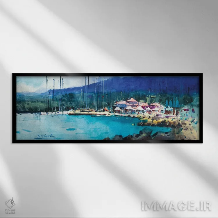 براساس پالت ترکیبی اثر، قاب تیک گرم (چوبی) پیشنهاد اول است و مشکی مات (فریم متوسط) مکمل. برای سفارشهای پروژهای با ابعاد و قابهای اختصاصی با ایماژ در تماس باشید.