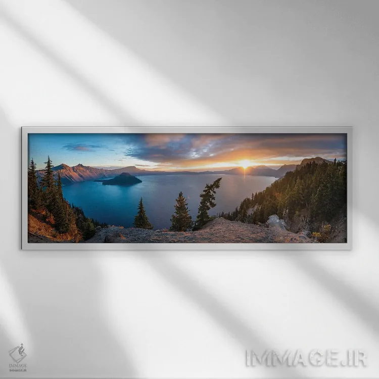 برای دیواری که میخواهید سلیقهتان را آرام و دقیق نشان بدهد، «پانورامای دریاچه دهانه آتشفشان» اثرِ «لوکاس مور» جلوهٔ اتاق را یک پله حرفهایتر میکند؛ برای فضاهای کمنور که به «نقطهٔ روشن» نیاز دارند پیشنهاد میشود. اگر میخواهید مهمانها مکث کنند، این اثر دلیل خوبیست.