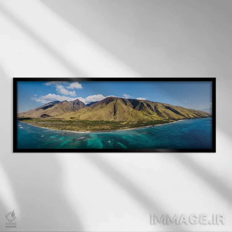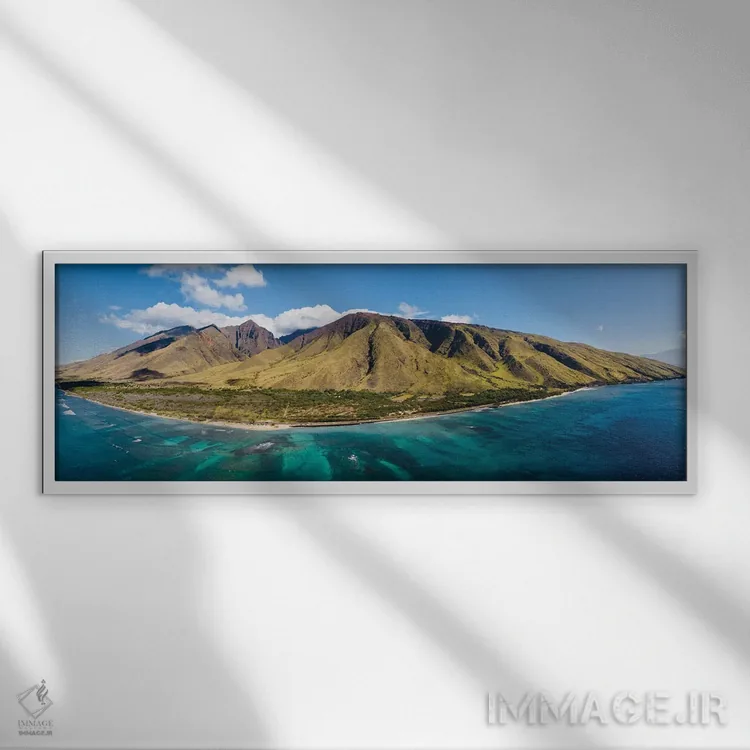 این تابلو با عنوان «نمای هوایی از غرب مائوئی» اثرِ «لوکاس مور» بین نور و رنگ، تعادل خوشنشینی میسازد؛ برای نشیمنهای صمیمی و پذیراییهای شیک پیشنهاد میشود. اگر میخواهید یک اثر همیشه «بهروز» بماند، انتخاب خوبیست.