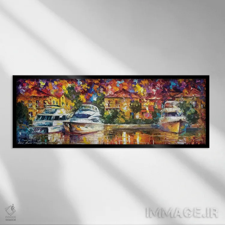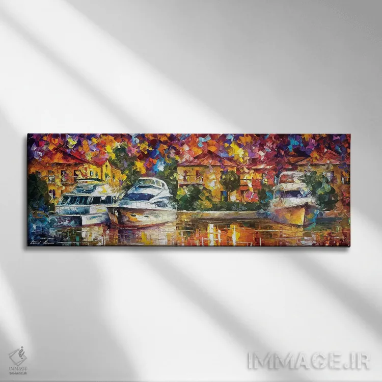 «قایق بادبانی» اثرِ «لئونید آفرموف» با حالوهوای این اثر و لحنِ دکور ساحلی، فضا را روشنتر و سبکتر نشان میدهد—مناسبِ نشیمنهای آفتابگیر.