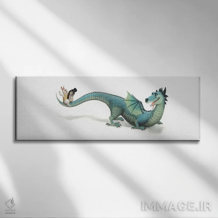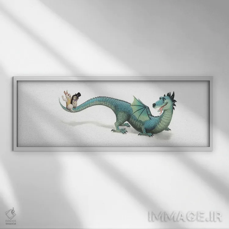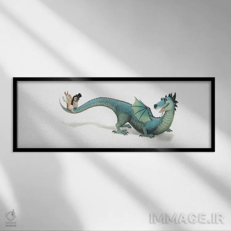 برای دیوارهای ساده، «یک اژدها نقل مکان میکند» اثرِ «لیزا فالکنسترن» مثل یک امضای بامزه اما متین عمل میکند؛ برای دکورهایی با رنگهای خنثی انتخابی خوشسلیقه است. با قاب چوبی یا مشکی، حس مرتبتری پیدا میکند.