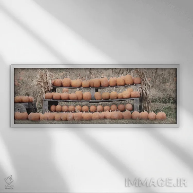 تابلو "چیدن کدو تنبل" اثر لری دیتِر - نمای قاب‌دار سفید