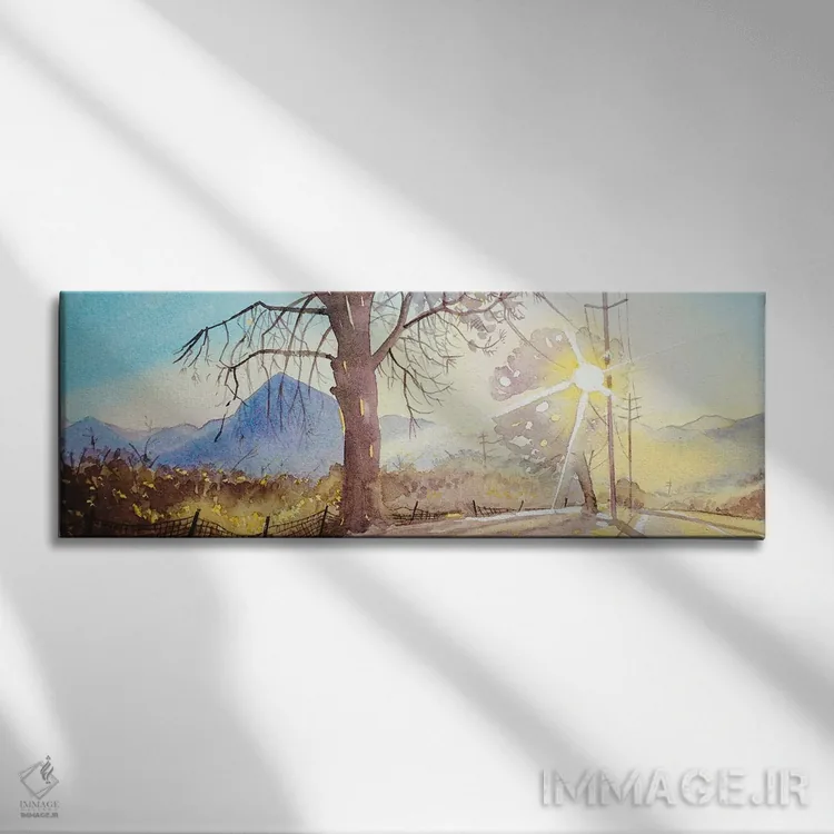 براساس پالت گرم اثر، قاب بلوط روشن (چوبی) پیشنهاد اول است و استخوانی ملایم مکمل. برای سفارشهای پروژهای با ابعاد و قابهای اختصاصی با ایماژ در تماس باشید.