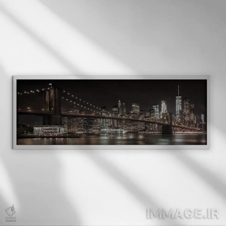 برای دکورهای ساختارمند و مدرن، «خط افق منهتن و پل بروکلین در منظره شبانه رویایی» اثرِ «ملانی ویولا» اتاق را مرتبتر و منسجمتر نشان دهد؛ برای لابی و فضاهای رسمی انتخابی خوشسلیقه است. جزئیاتش از نزدیک هم خواناست و خوشپرداخت.