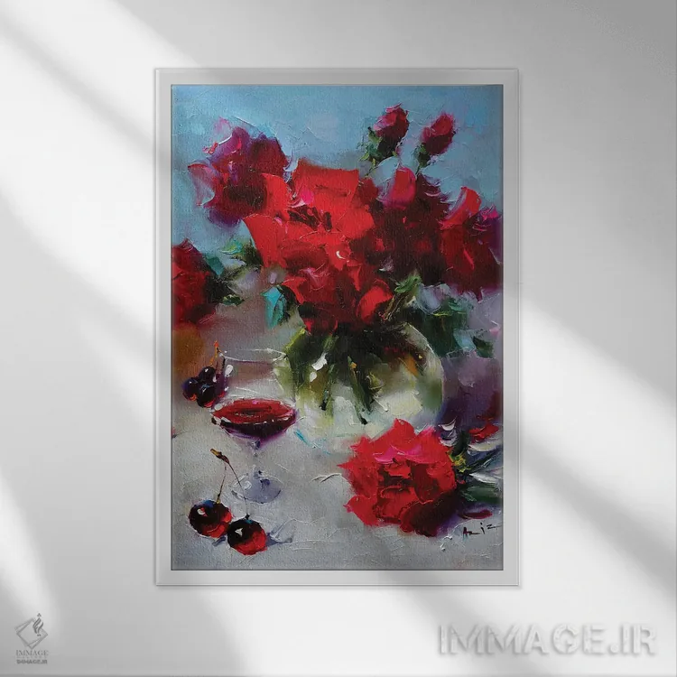 تابلو شراب قرمز اثر عزیز سلیمان‌اف - نمای قاب‌دار مشکی